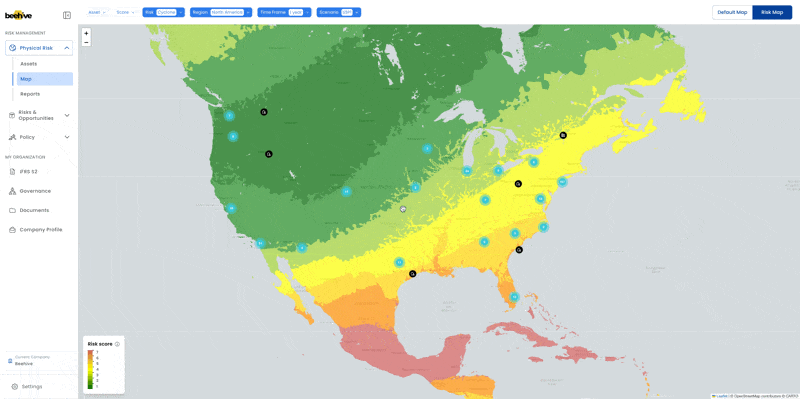 Beehive makes it easy to conduct an audit-ready physical risk assessment on global assets. Comply with climate-risk disclosure regulations and get a useful view of risks from wildfires, floods, cyclones, and more.